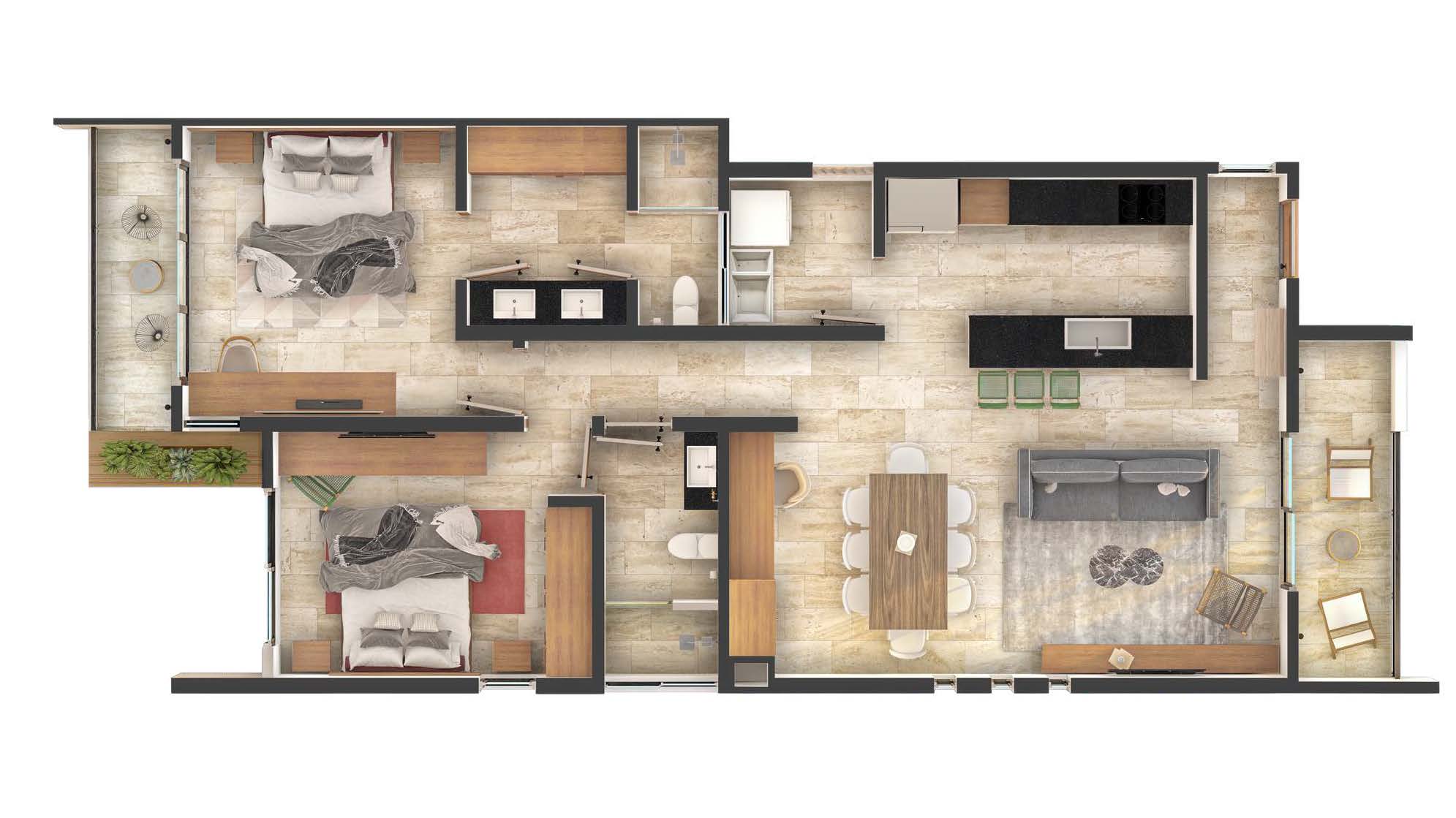 distribuidos en dos torres, con 5 niveles y 4 departamentos por nivel, cada uno diseñado para maximizar tu comodidad y privacidad, con amenidades de primer nivel. Con orientación Norte - Sur.