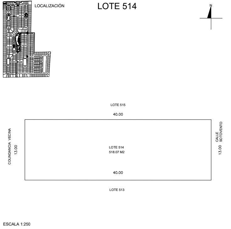 E: 514 Precio de contado Terreno: 518.07m2 $2,600