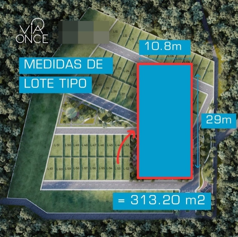 Terrenos desde: 313.20 m2 (10.8m x 29m)