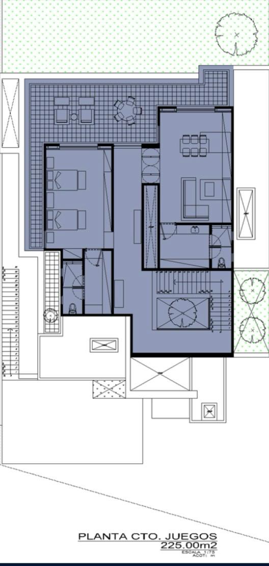 La planta destinada al cuarto de juegos brinda un espacio ideal para el entretenimiento y la convivencia, con recibidor, cuarto de juegos con baño completo y vestidor, una recámara adicional con baño completo y vestidor, y una terraza que complementa este nivel. En el sótano se desarrolla el área de servicio de manera totalmente independiente, integrada por dos cuartos de servicio con baño completo, estancia de servicio, área de planchado y lavandería, asegurando una operación eficiente y discreta de la residencia.