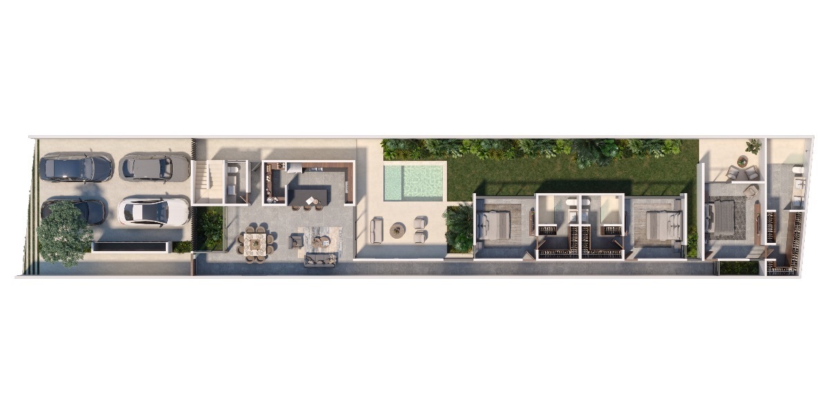 * Este é um render que pode variar em relação ao resultado real.*Hermosas casas de una planta, en el corazón de Temozón Norte.