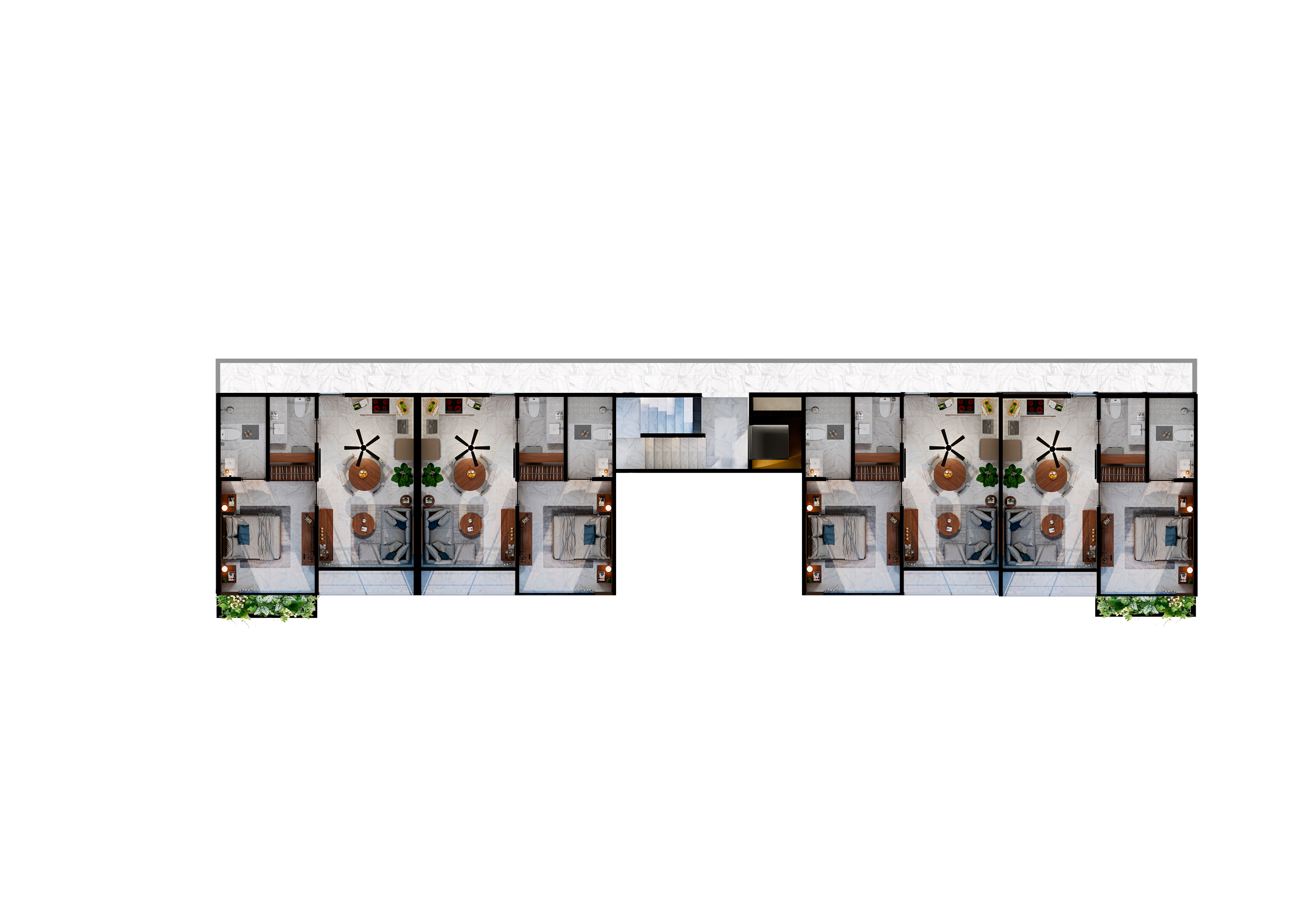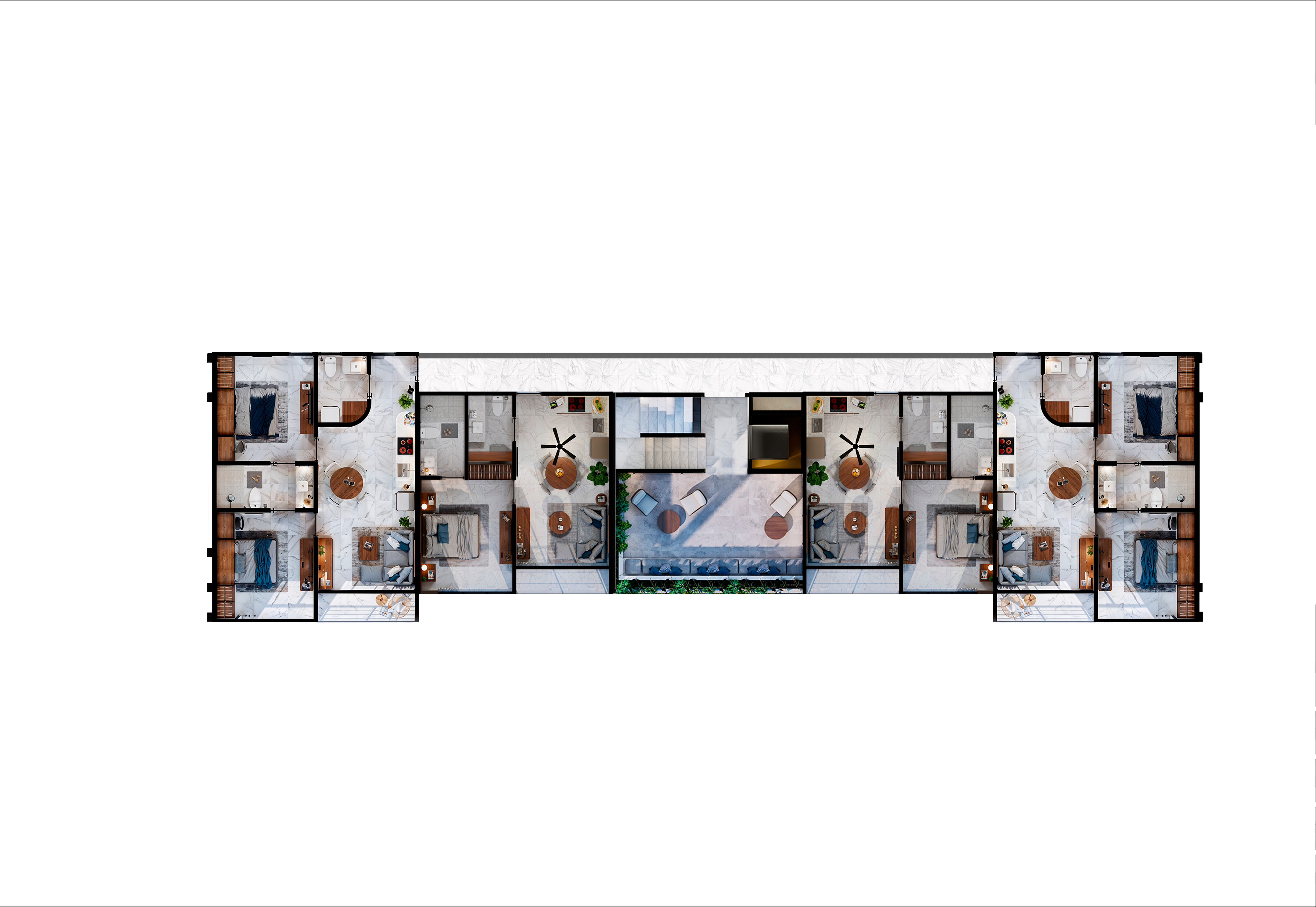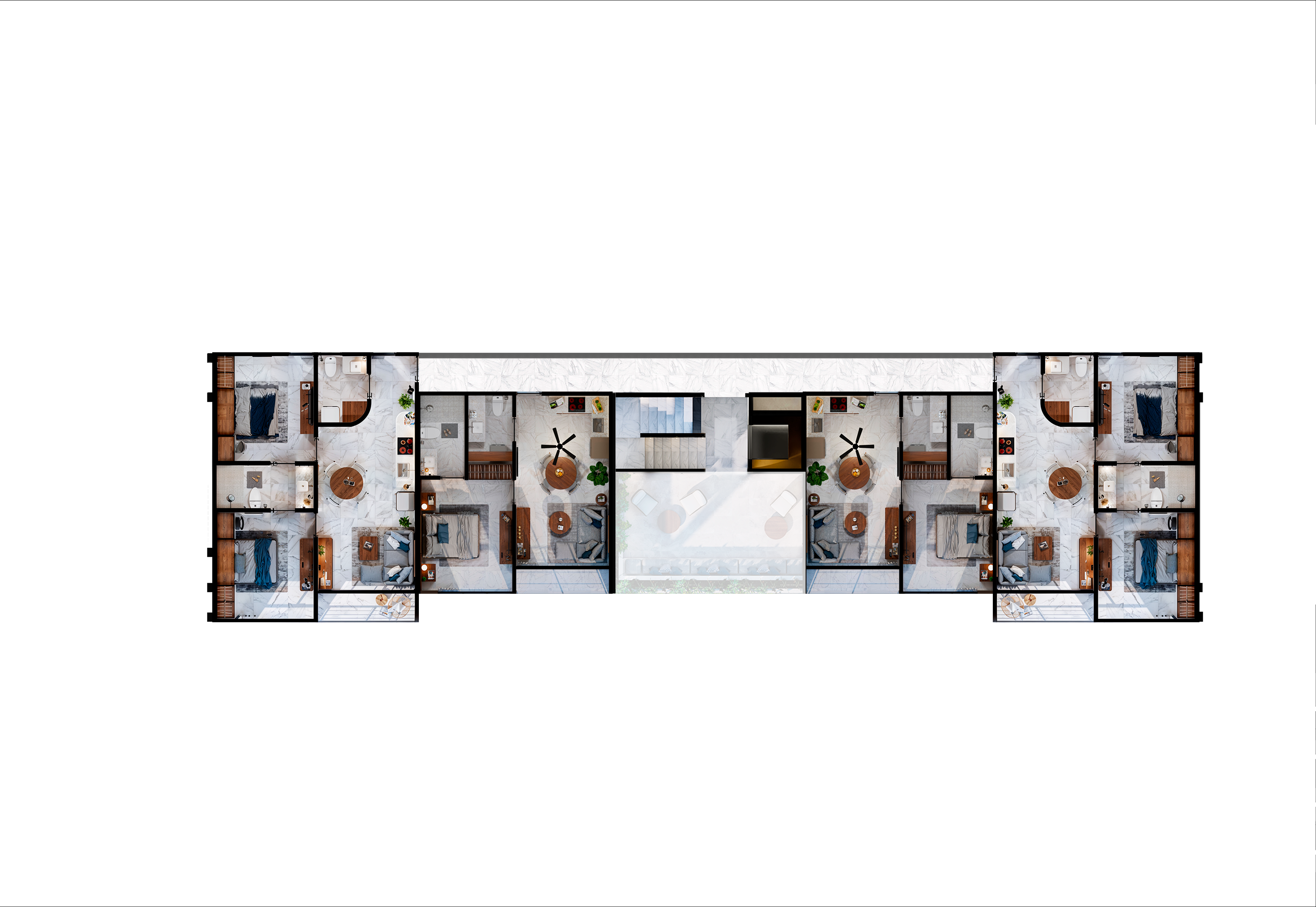 En un terreno de 1,080.66m2 se construyen 21 departamentos distribuidos en 6 niveles con 3 diferente modelos.