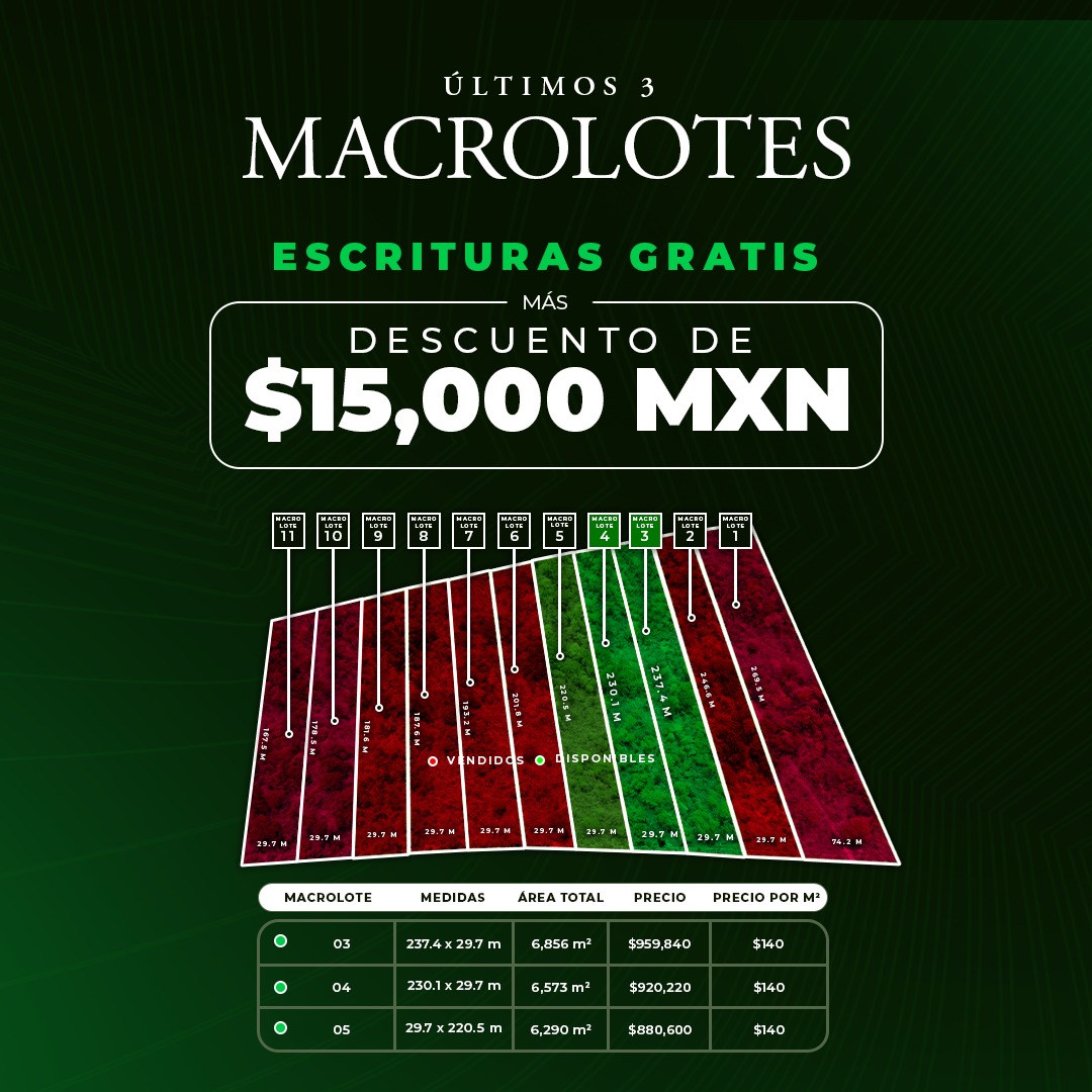 L.5 6290m2 $886,000.00 Precio x m2: $140.00