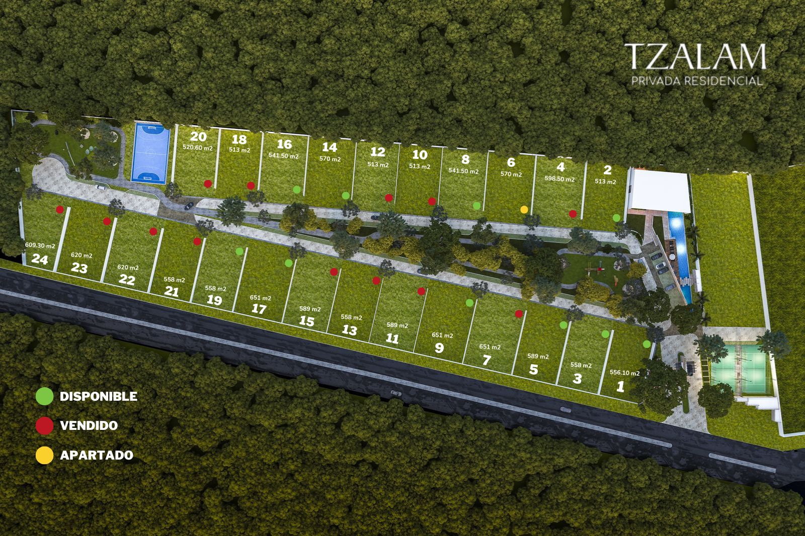 24 Lotes Residenciales entre 500 y 650 mts2, orientación norte sur.