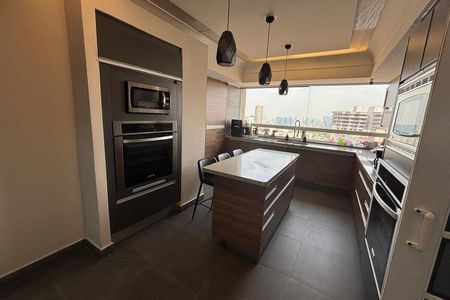 Edifício com estacionamento para visitantes. Apartamento com três quartos, três banheiros e meio, três vagas de estacionamento, 318 m construídos e 330 com áreas comuns e terraço.
