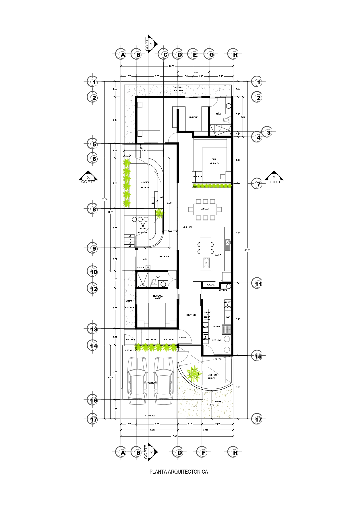 Terreno: 10 x 30 metros.