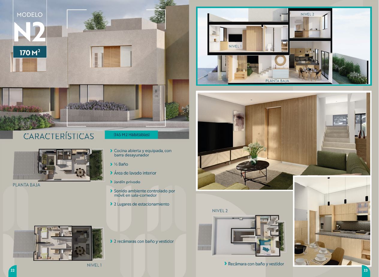 Mais de 13.000 m2 de área comercial foram destinados para o complexo. Conta com muros perimetrais em cada lote, construídos com as mesmas características, o que proporciona uma imagem homogênea que contribui para dar identidade ao desenvolvimento; juntamente com áreas verdes que ajudam a manter o ambiente orgânico.Casa en venta Amaia Modelo "N2" Altos de Juriquilla. 170.61 m2 de Construcción + 35.5 m2 de Jardín. Tres Niveles. Tres Recámaras. EN PLANTA BAJA. Cocina Abierta equipada con barra desayunador. Medio Baño. Área de Lavado Interior. Sonido Ambiente controlado por móvil, Jardín Privado. 2 Lugares de Estacionamiento.