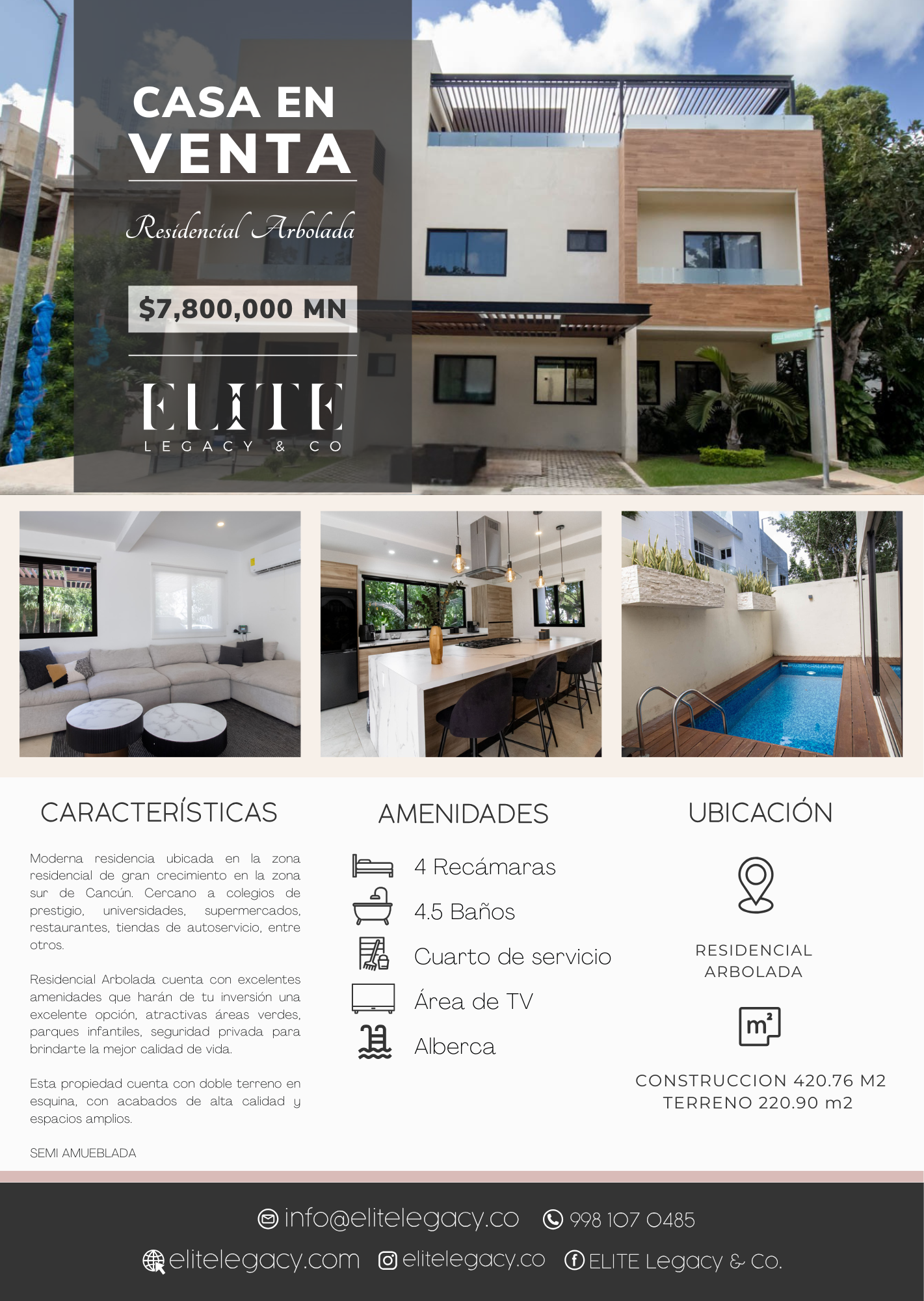 Moderna residencia ubicada en la zona residencial de gran crecimiento en la zona sur de Cancún. Cercano a colegios de prestigio, universidades, supermercados, restaurantes, tiendas de autoservicio, entre otros.
