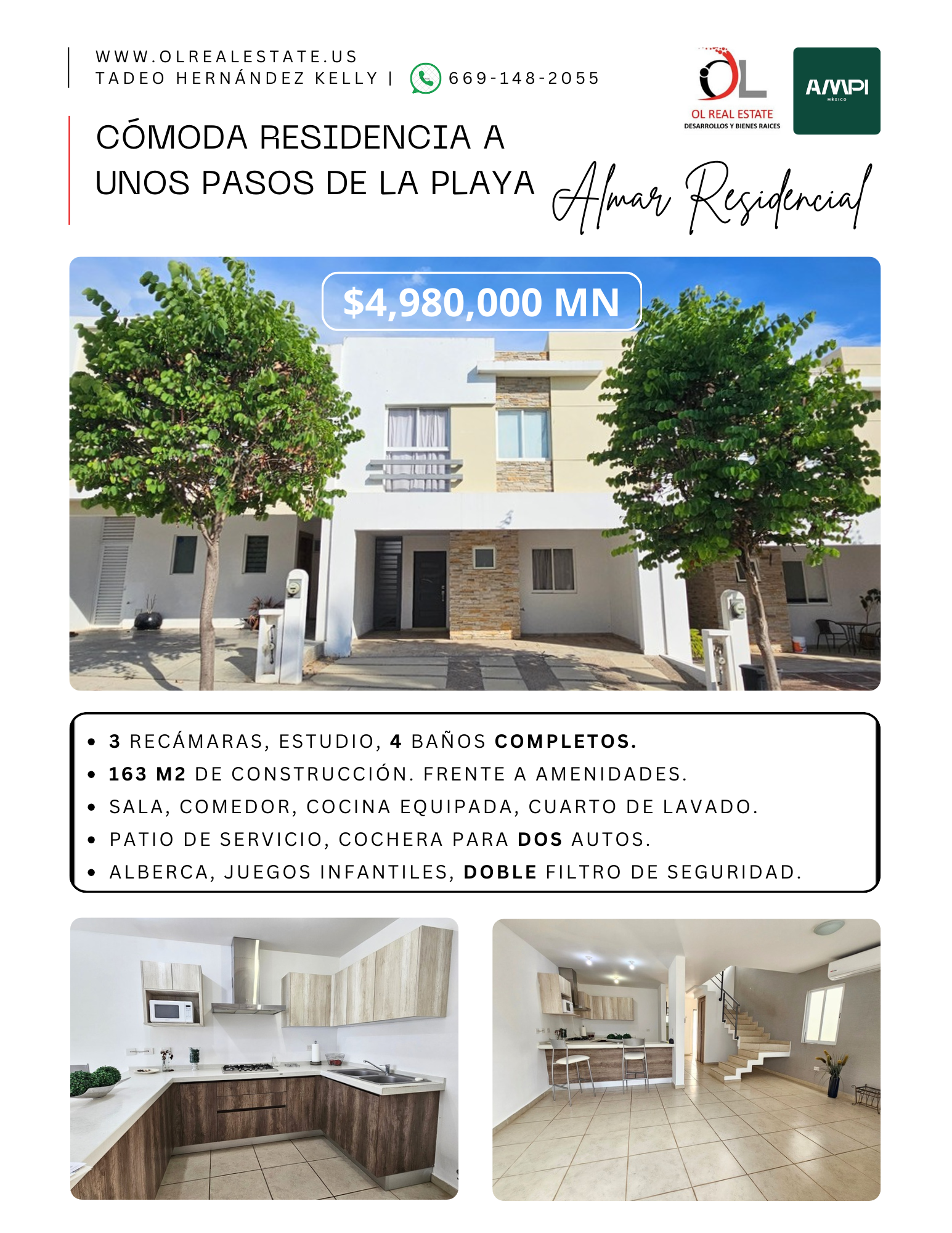 163 M2 de construção.3 Recámaras, Estudio, 4 baños completos.