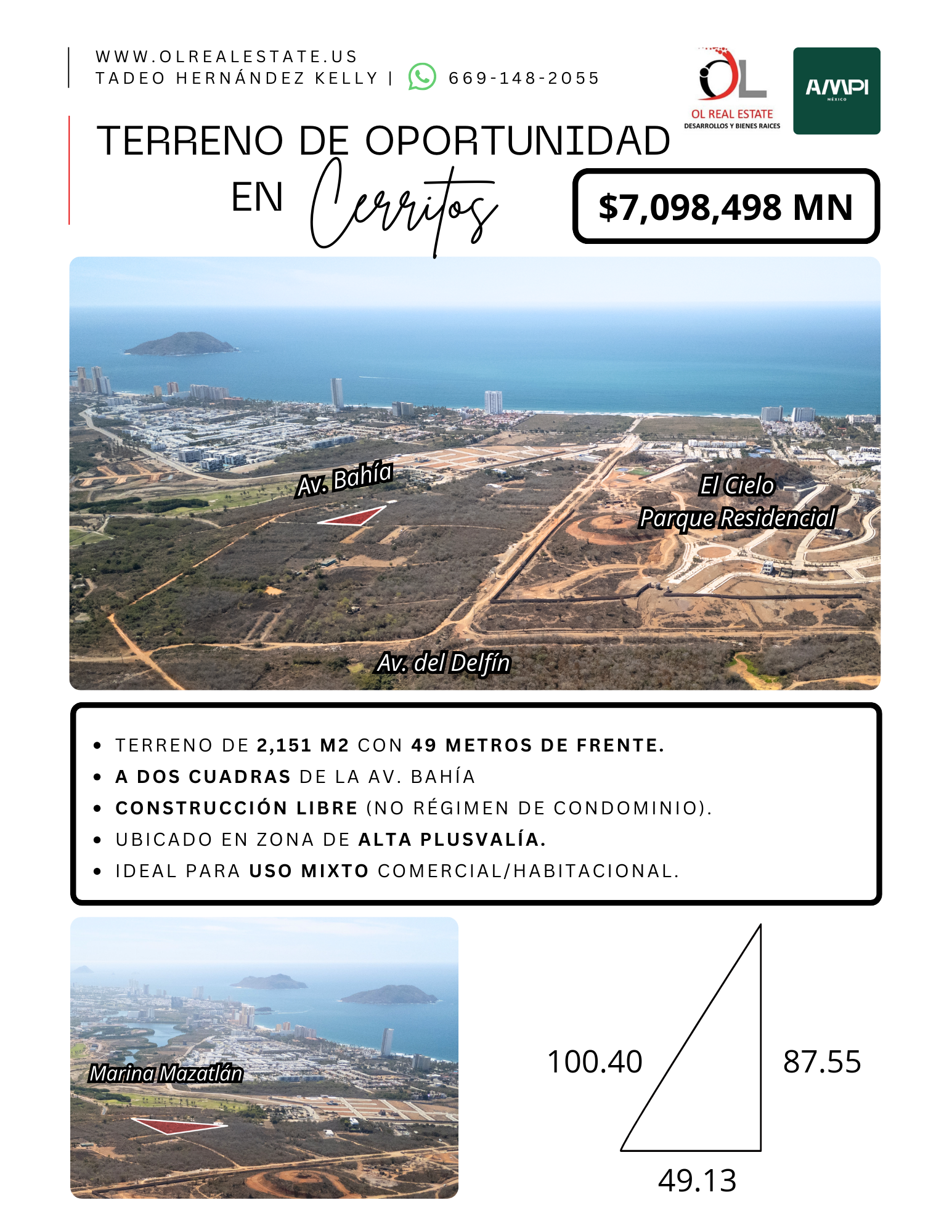 49 metros de frente (subdivisión viable).