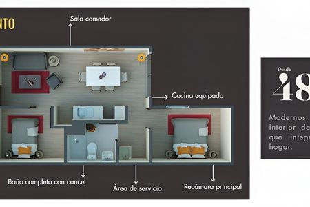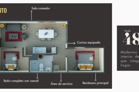 Departamento em San Francisco Xocotitla 100 de 56 m2
