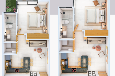 Apartamentos de um quarto com 2 piscinas e telhados