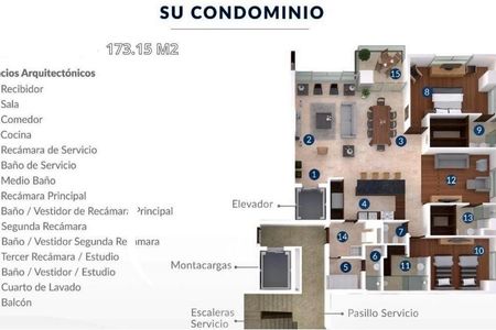 Dentro de Puerta Las Lomas, está à venda um apartamento de luxo: 3 quartos + quarto de serviço.