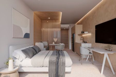 Estúdio com acesso à praia, terraço, banheira, piscina e área de coworking