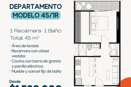 Apartamento à venda, TAM 18 localizado ao norte de Mérida. TIPO "B" 1º NÍVEL