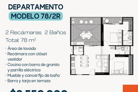 Apartamento à venda, TAM 18 localizado ao norte de Mérida. TIPO "A" 2º NÍVEL.