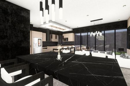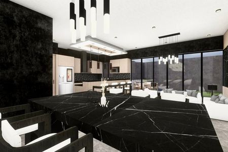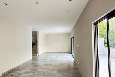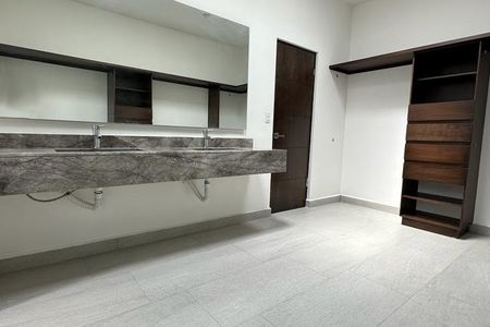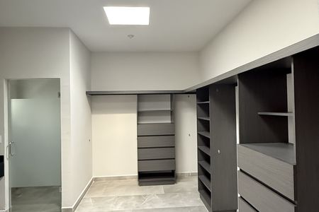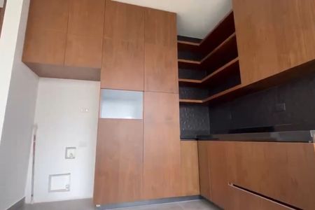 Teto alto, com cozinha, armários e janelas de vidro duplo