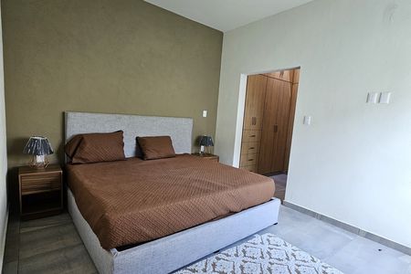 Linda casa à venda no norte de Colima, quarto no andar térreo e portão.