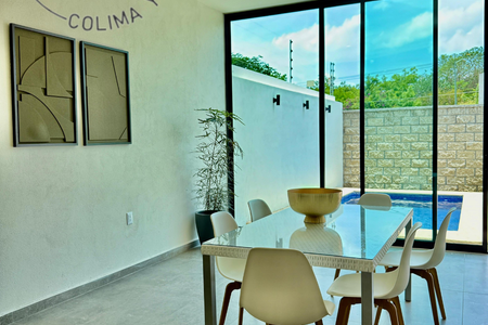Linda casa de um andar com sala e comedor em altura média, ao norte de Colima