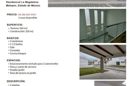 Casa à Venda na Col. Santa María Magdalena Ocotitlán, Metepec!!
