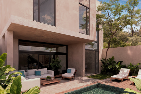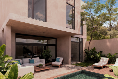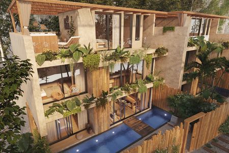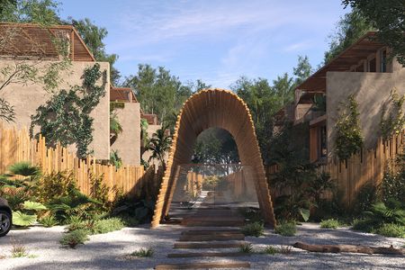 Casas modernas na selva em Tulum com baixas taxas de HOA, financiamento direto e acesso à praia.
