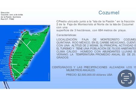 Terreno à venda no Norte da Ilha de Cozumel. 3 hectares 684 metros de praia.