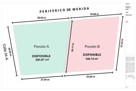 Terreno à venda na via periférica com 88,6 m2 de frente. Mérida Yucatán.