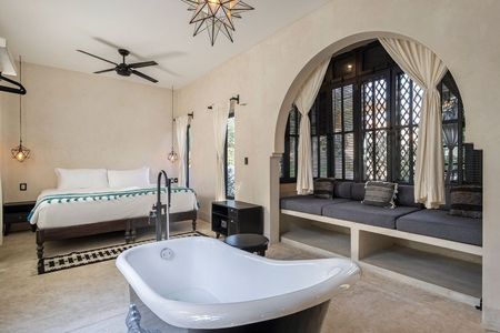 “Fazenda de luxo em Tulum: experimente a magia do design marroquino-mexicano.”