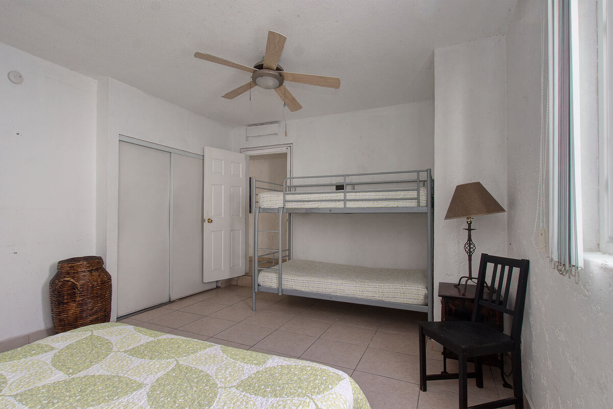 The garage has been upgraded to include a third bedroom and bathroom, large enough for bunk beds and a bigger bed, plus a washer and dryer.