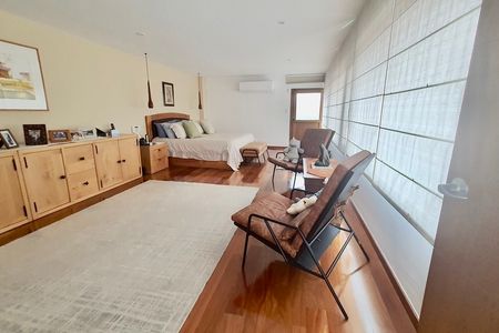 Andar Superior: 3 quartos, cada um com banheiro independente integrados a um hall e um escritório independente com quarto individual com banheiro completo, cozinha, sala de jantar e escadas externas.