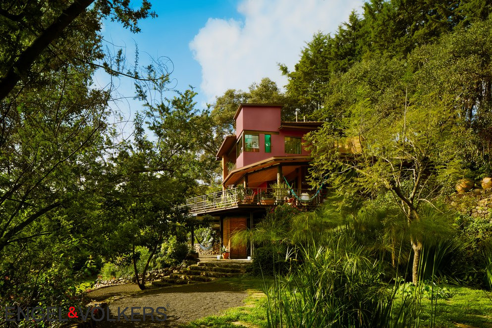 No alto da densa floresta de Acatitlán, Valle de Bravo, esta propriedade excepcional parece emergir da própria terra. Concebida pelo arquiteto Guillermo de la Cajiga, sua arquitetura é um manifesto de arte e natureza.