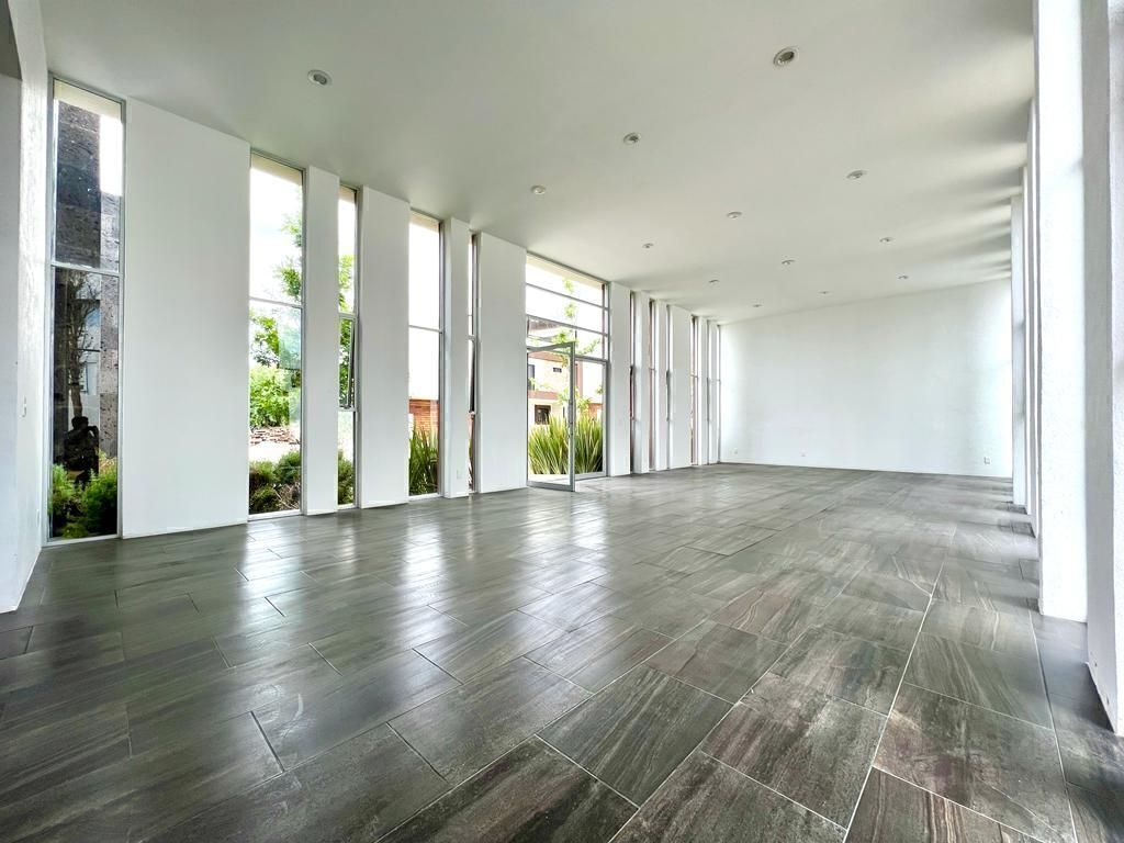 Planta baja: Sala, comedor, cocina con isla y alacena, baño de visitas, recámara principal con baño completo, clóset y vestidor, área de lavado techada, cuarto de servicio con baño completo, pasillo lateral, patio y cochera para 3 autos.