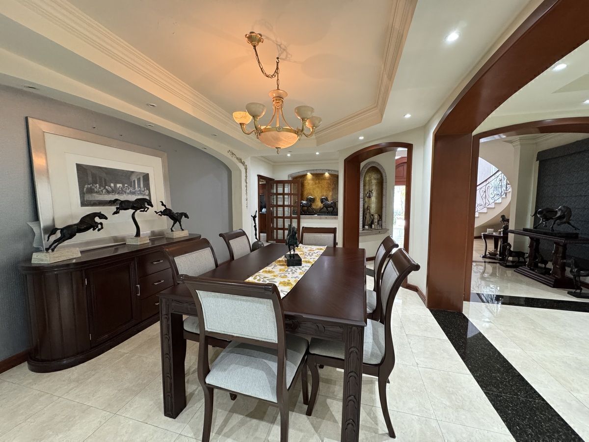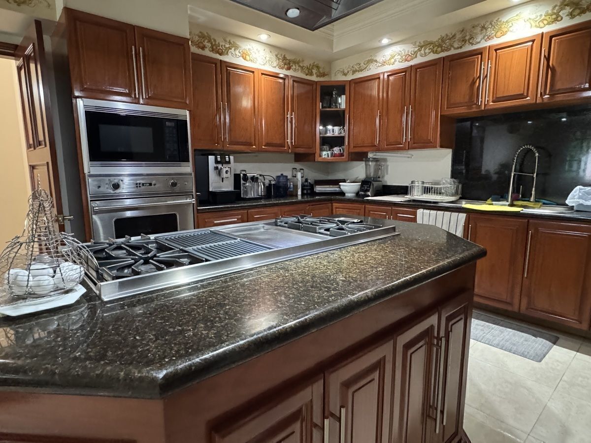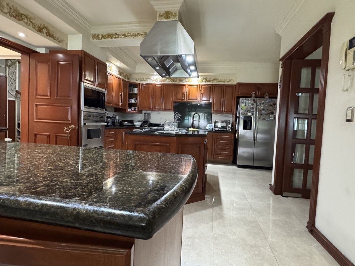 • Cocina equipada, con isla y barras de cuarzo, desayunador, alacena y antecomedor,