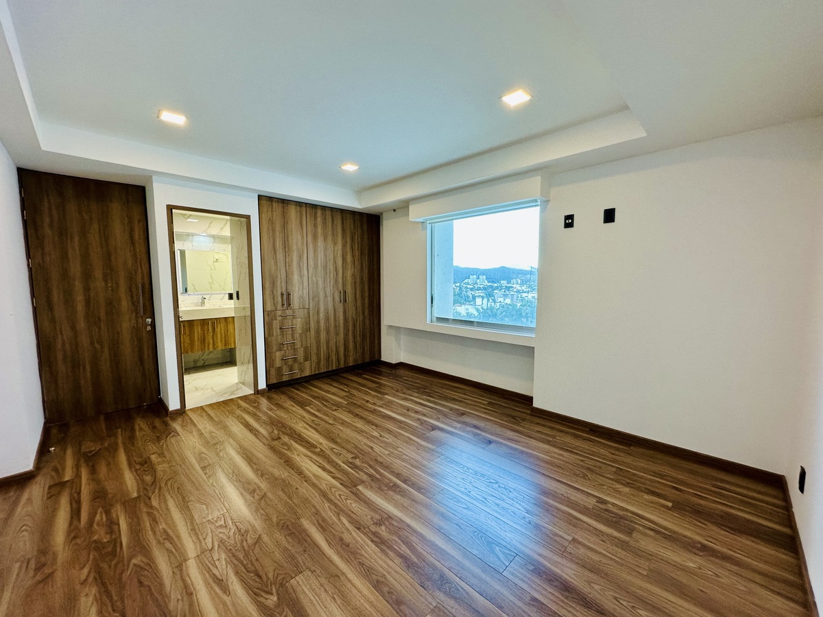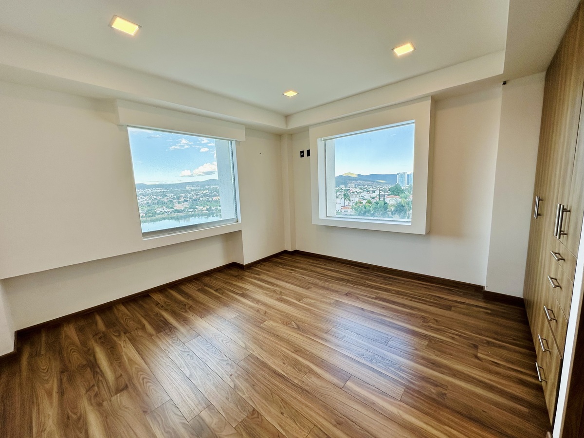 Cuenta con 3 recámaras, cada una con baño propio; la principal con walk-in closet y terraza con vista panorámica al lago.