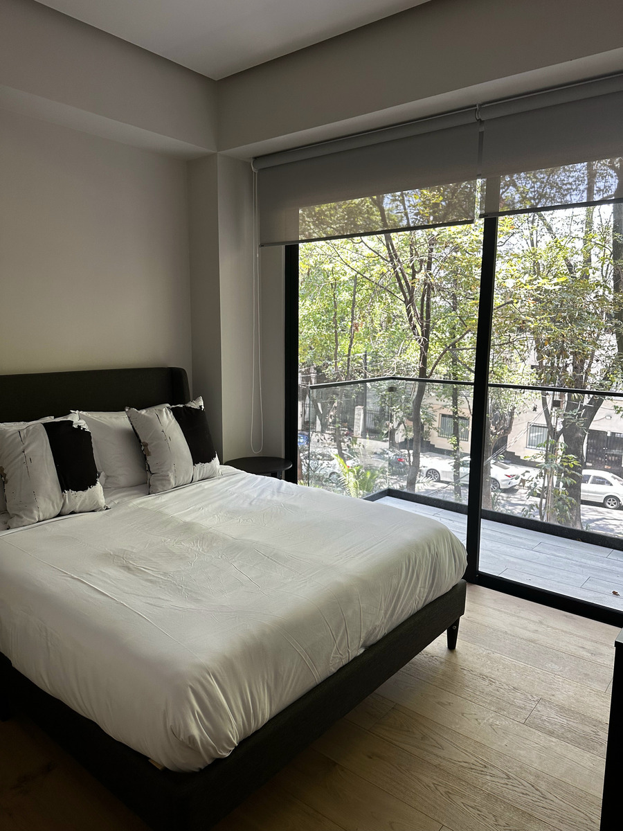 Amsterdam exterior com terraço privado, com saída da sala e do quarto principal.