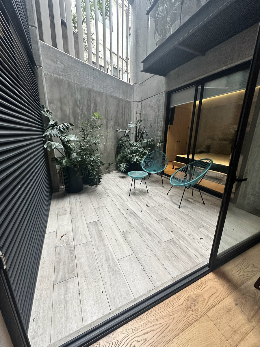 Jardim na cobertura na área comum.Amsterdam exterior con terraza privada, con salida de la estancia y de la recamara principal.