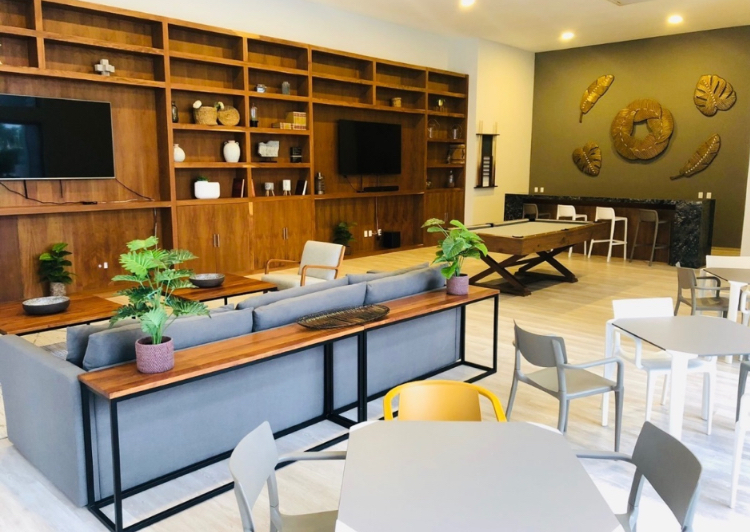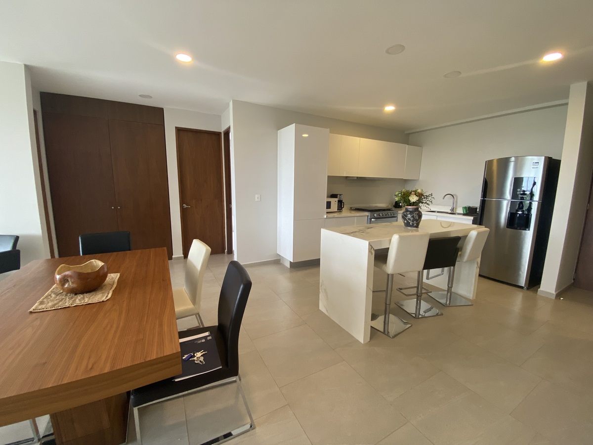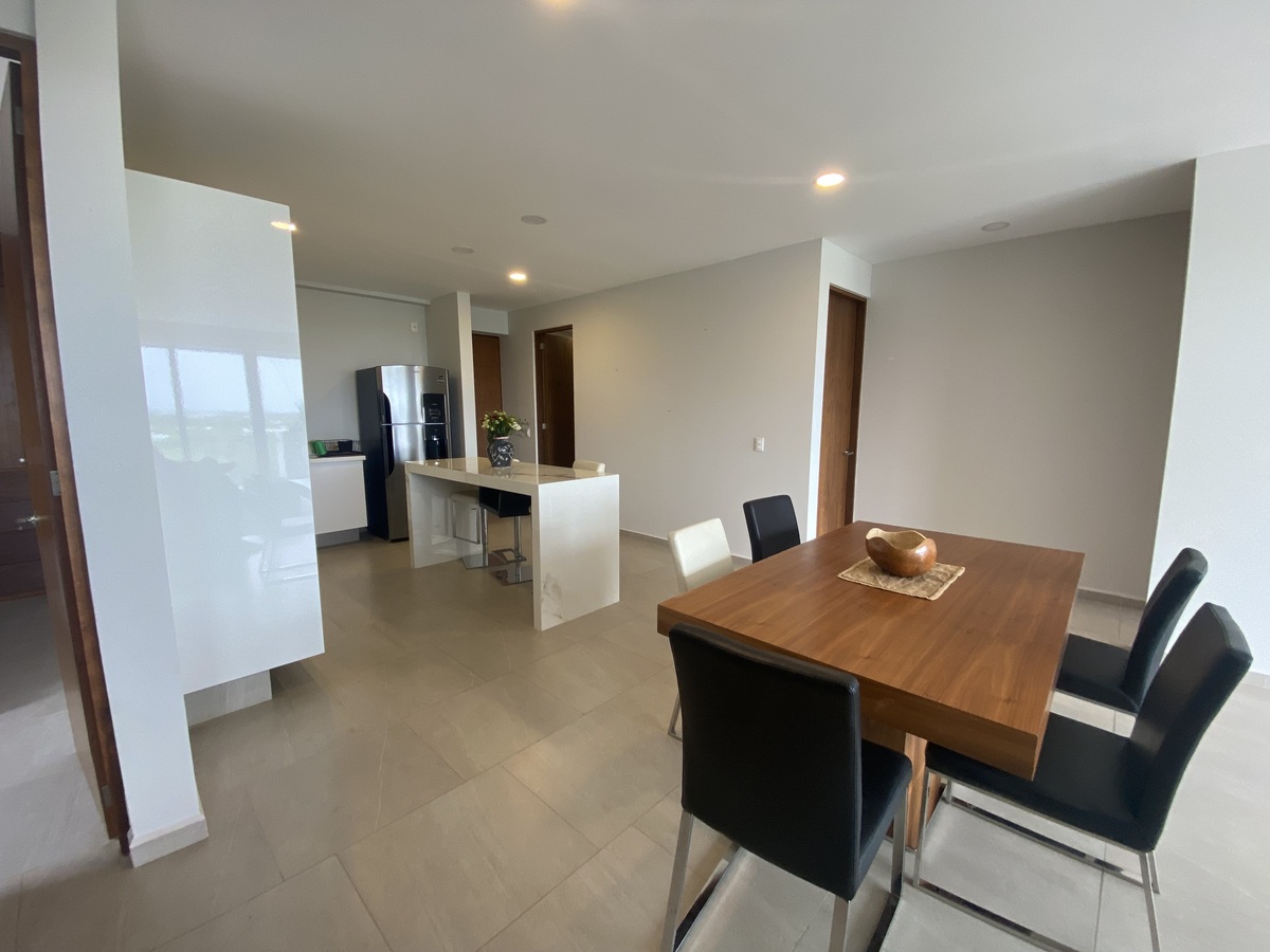 Este precioso departamento tiene espectaculares vistas hacia el norte, desde el cual se aprecia la alberca y jardines del complejo. Su enorme balcón en “L” permite apreciar 90 grados de preciosa vista desde el 7o piso del edificio.