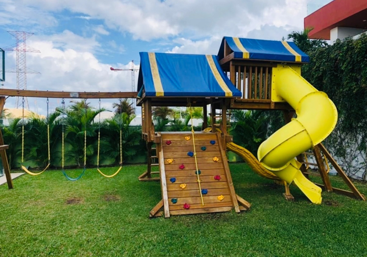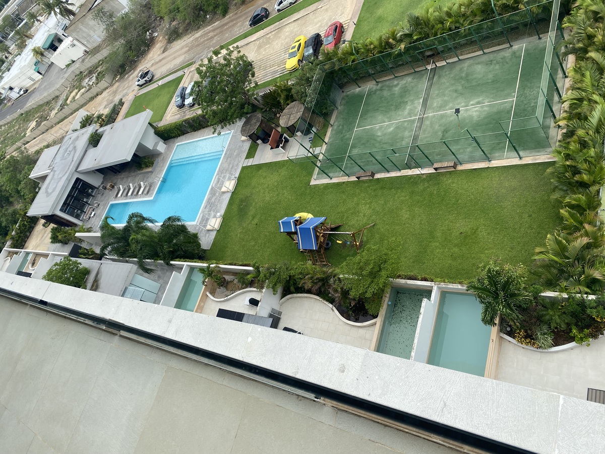 Este lindo apartamento tem vistas espetaculares para o norte, de onde se pode ver a piscina e os jardins do complexo. Seu enorme balcão em "L" permite apreciar 90 graus de vista preciosa do 7º andar do edifício.