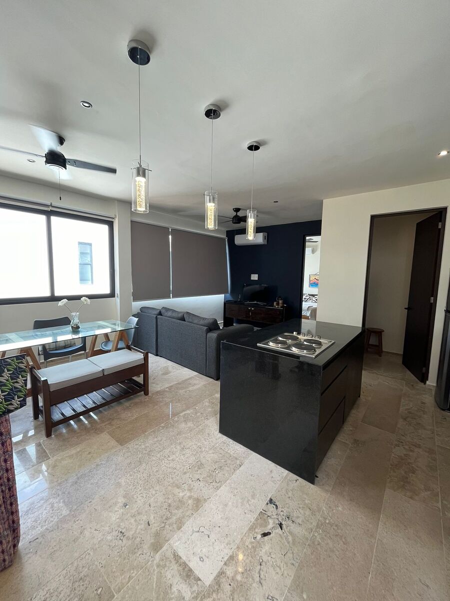 De un excelente gusto, amueblado; con clóset vestidor en las dos recámaras y dos baños. Isla en la cocina, equipada. Área de lavadora. Dos cajones de estacionamiento.