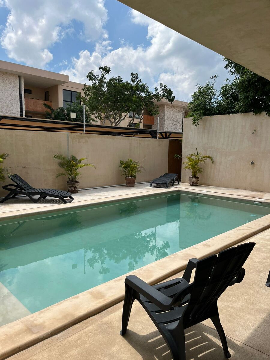 Este depa está precioso! Se encuentra en el segundo piso de un edificio con piscina y terraza de estar.