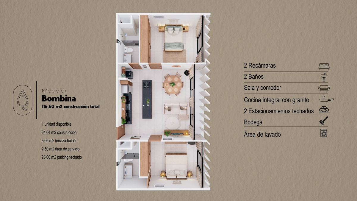 *Disponibilidade e preços sujeitos a alteração sem aviso prévio.Anura es un complejo de 28 departamentos, cada uno de ellos con balcón y acceso a todas las amenidades, que se distribuyen en nuestras 5 plantas.