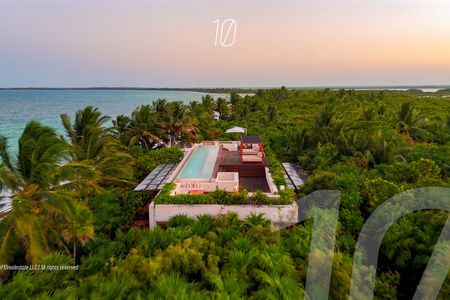 CASA SIANKAANA fue diseñada con una arquitectura maya-contemporánea y se encuentra en un terreno de 6,000m2 que tiene 100 metros de frente al mar de aguas cristalinas y 100 metros de frente de laguna.