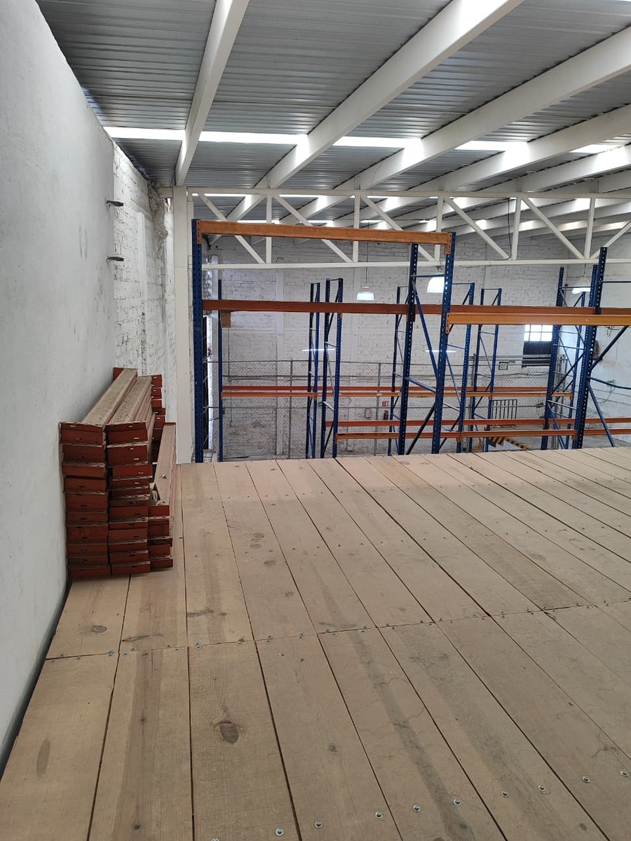 Amplia bodega cuenta con fondo para vehiculos y torton de 10metros con anden de una altura de 1,22mts con rack industrial de 6 metros de altura, con un tapanco de 100mts para oficina, baño completo y luz 220