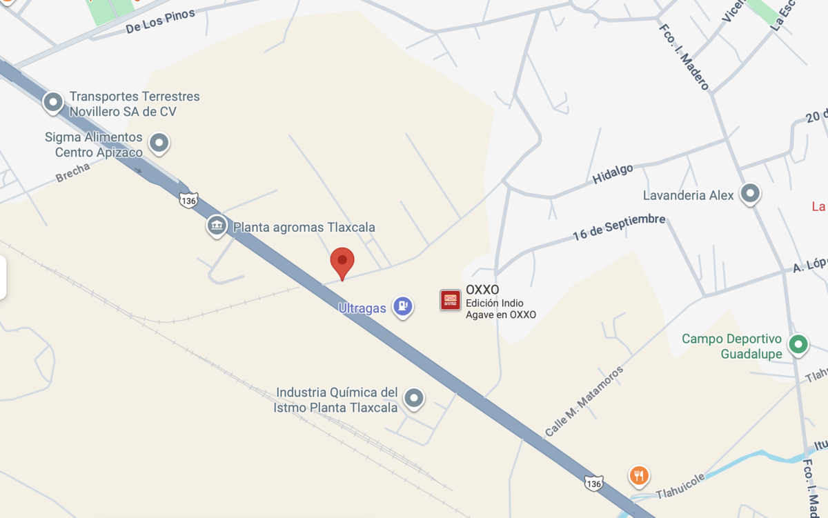 📍 Ubicación estratégica, con amplias vialidades y accesos para transporte pesado, a unos metros de carretera Federal Mexico – Veracruz , Xaloztoc, Tlaxcala a 11 km de Apizaco .