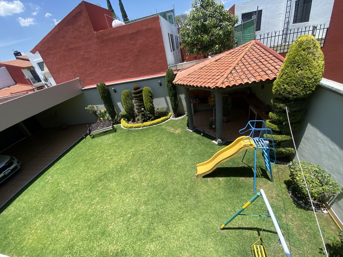 Amplio jardín con terraza y asador y con riego de aspersión