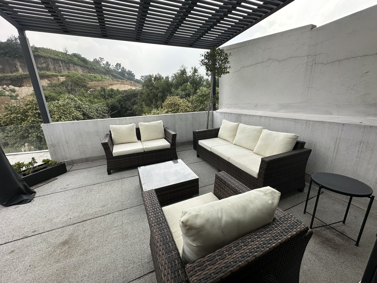 * Enorme terraza de 40m2, con increíble pérgola y también espacio al aire libre