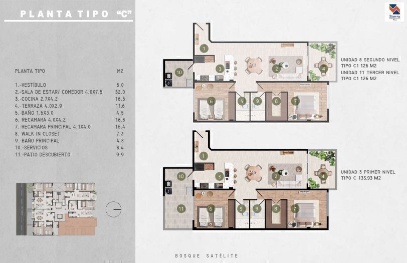 Bosque Satélite é um projeto vertical que consiste em 13 residências exclusivas de alta qualidade, projetadas e construídas com cuidado em cada detalhe, pensando na eficiência e conforto de seus espaços dentro de uma área desejada, na conveniência de uma localização consolidada com todos os serviços; centros comerciais e de entretenimento, acessibilidade e mobilidade urbana, educação, cultura e esporte ao alcance, centros de saúde de primeira.