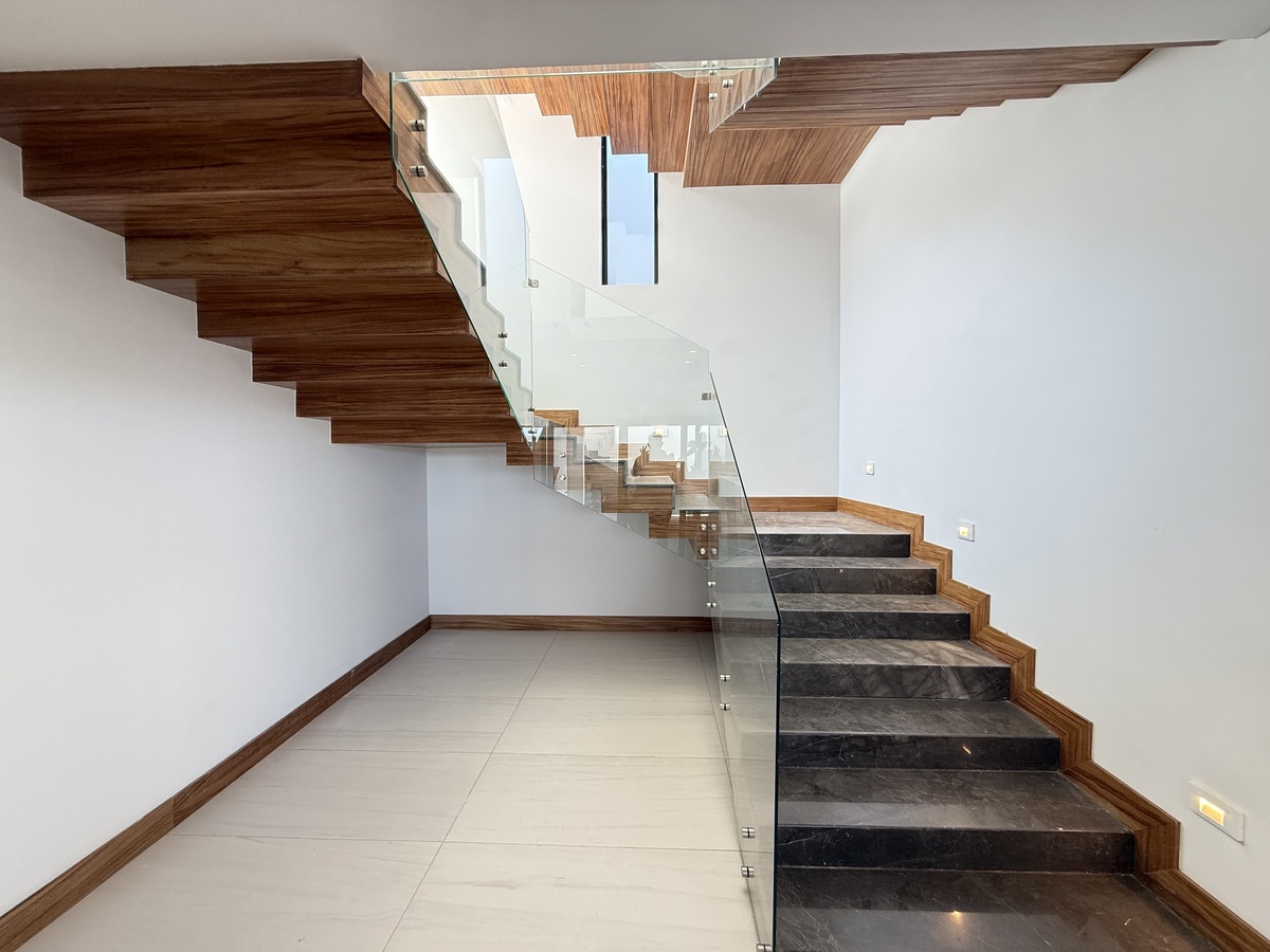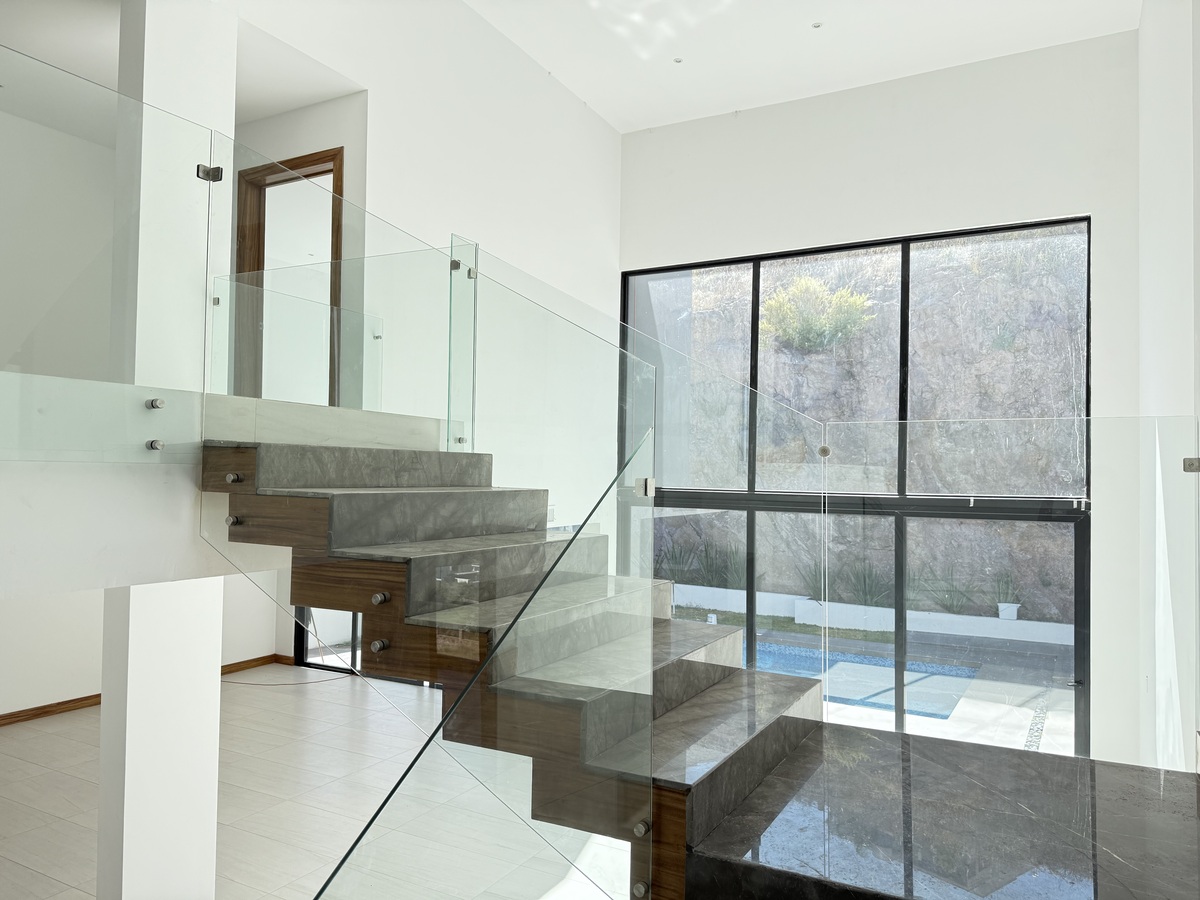 -Escadas com degrau de mármore polido e vidro temperado.🏡 RESIDENCIA DE LUJO EN BOSQUES DE SAN FRANCISCO – FRENTE AL CAMPO DE GOLF 🌳
