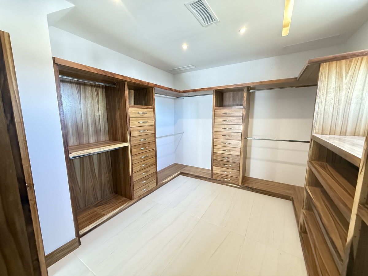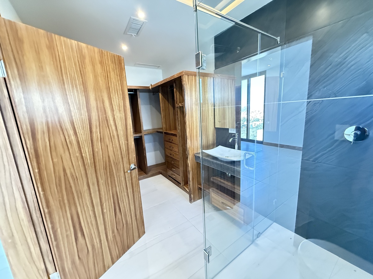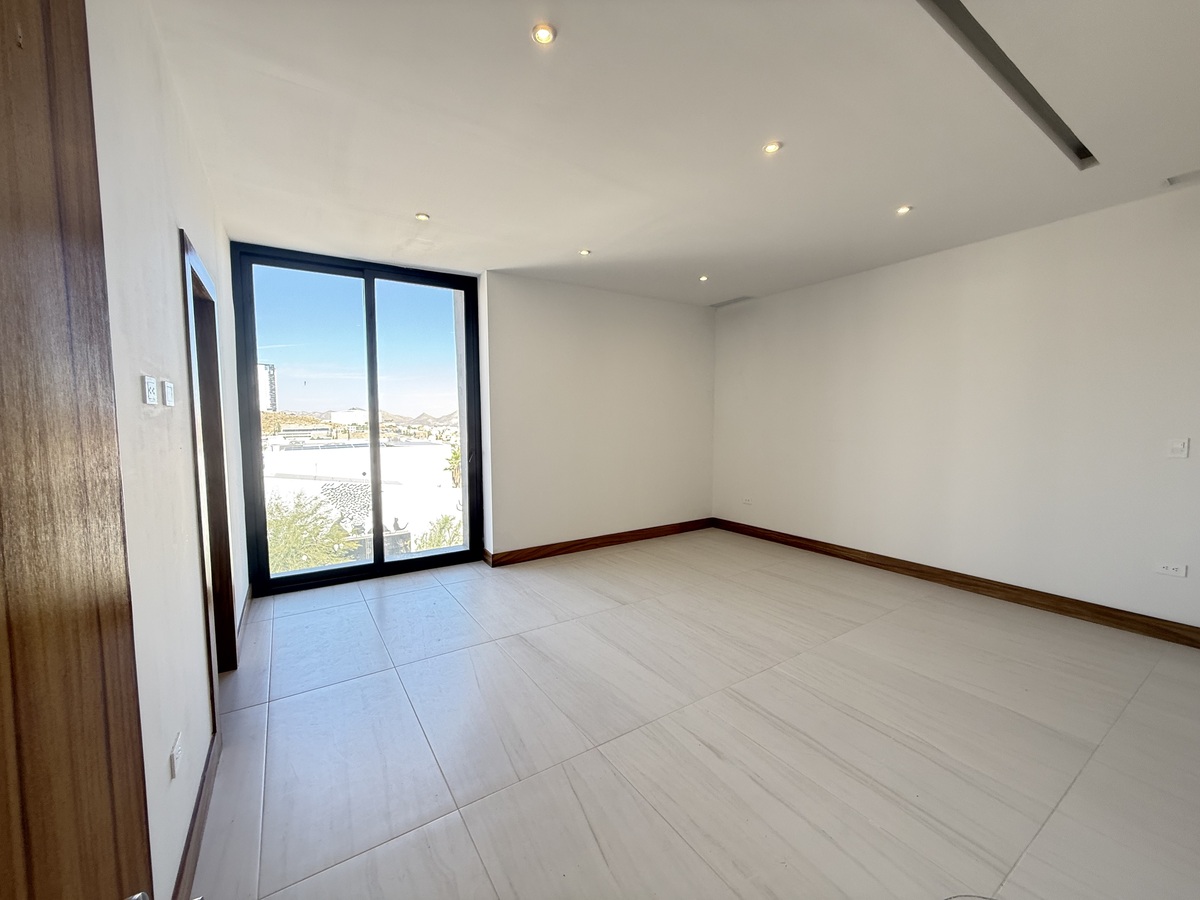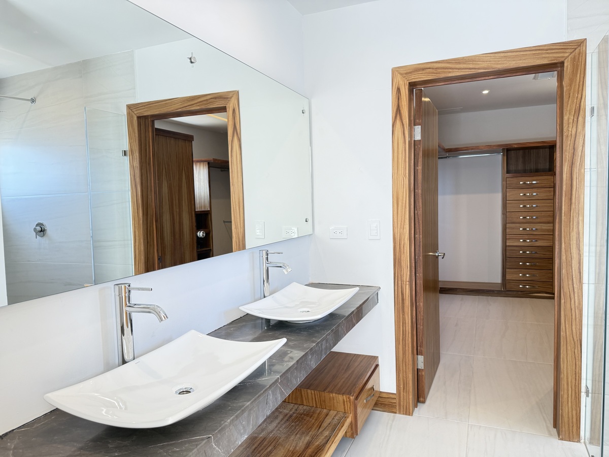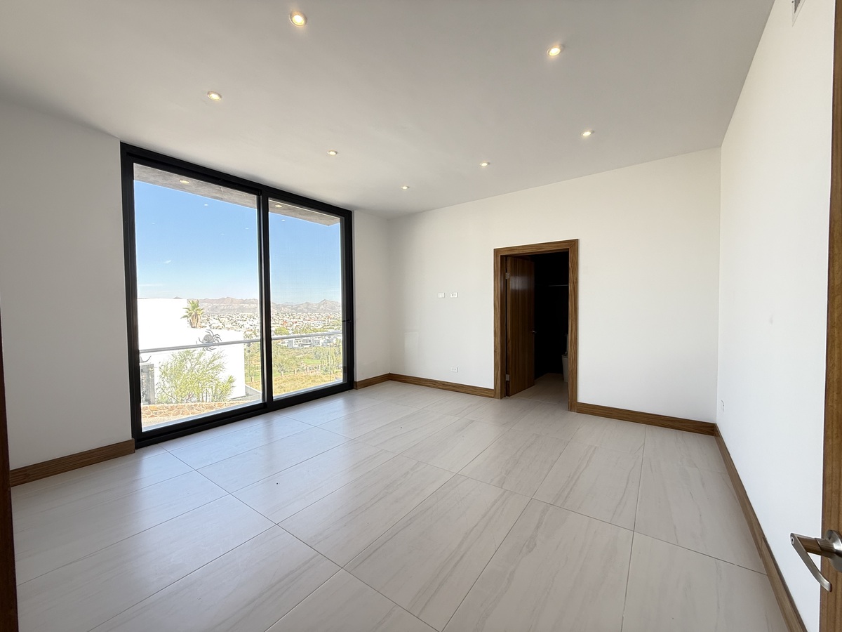 🛌 Recámara principal con ventanal panorámico hacia la alberca, baño con doble ovalín y vestidor con carpintería de parota