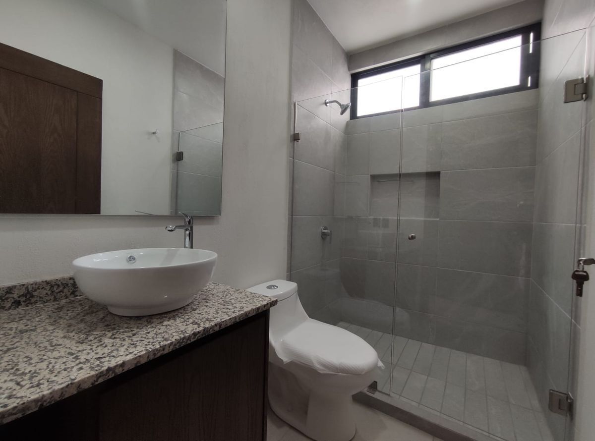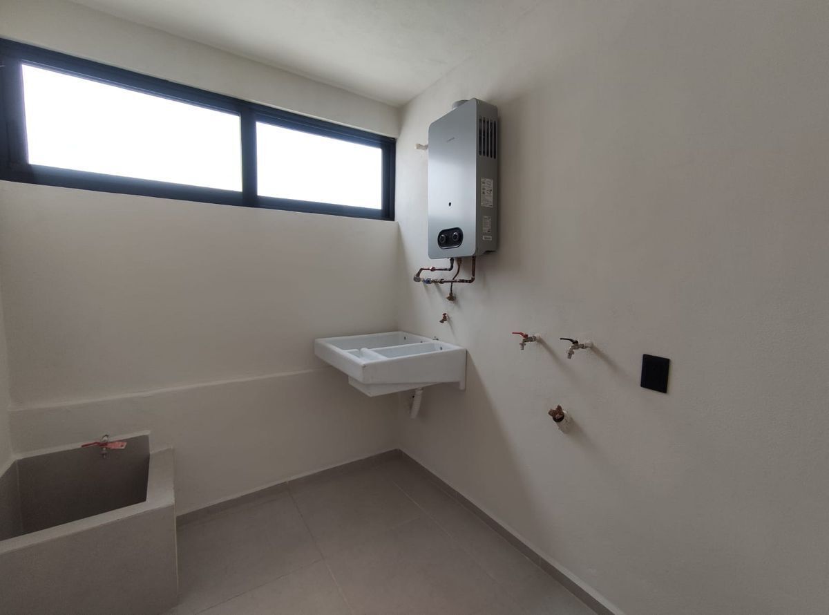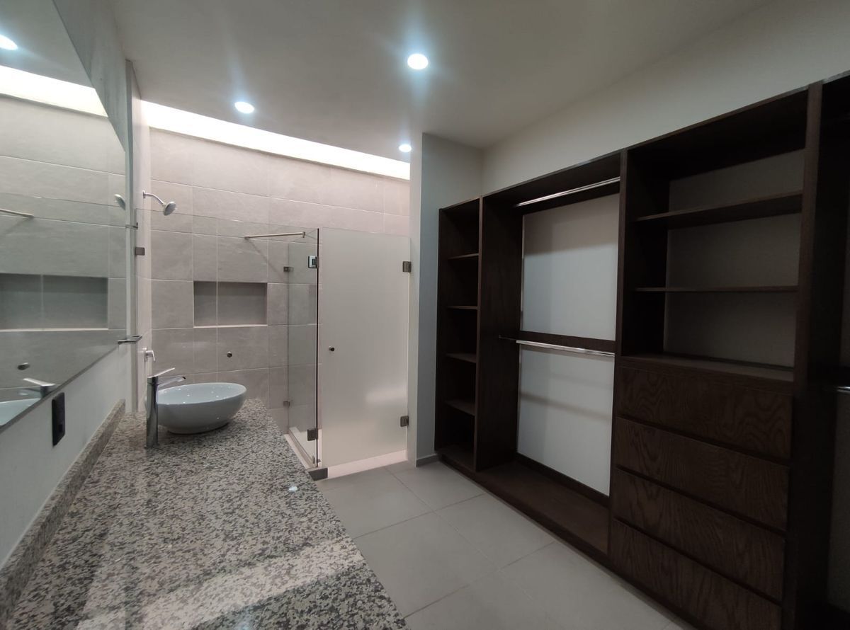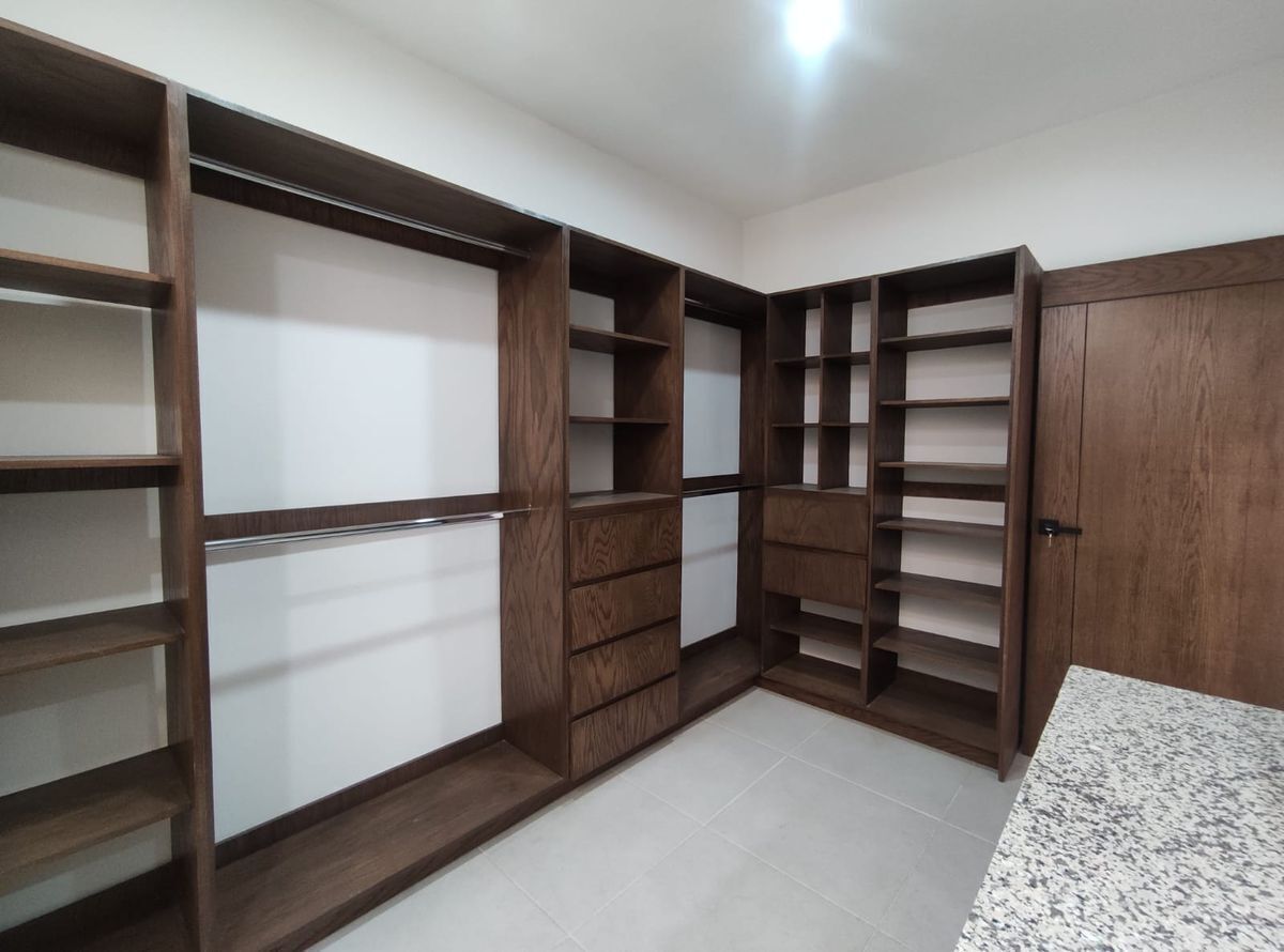 •Baño completo. •Sala a doble altura. •Closet de madera con puertas push up ubicado en el área común. •Comedor. •Amplia cocina integral con acabados de lujo, encino, cubierta en granito texturizado y muro splash en granito. •Puertas y cajones de cierre lento. •Piso cerámico 60x60.